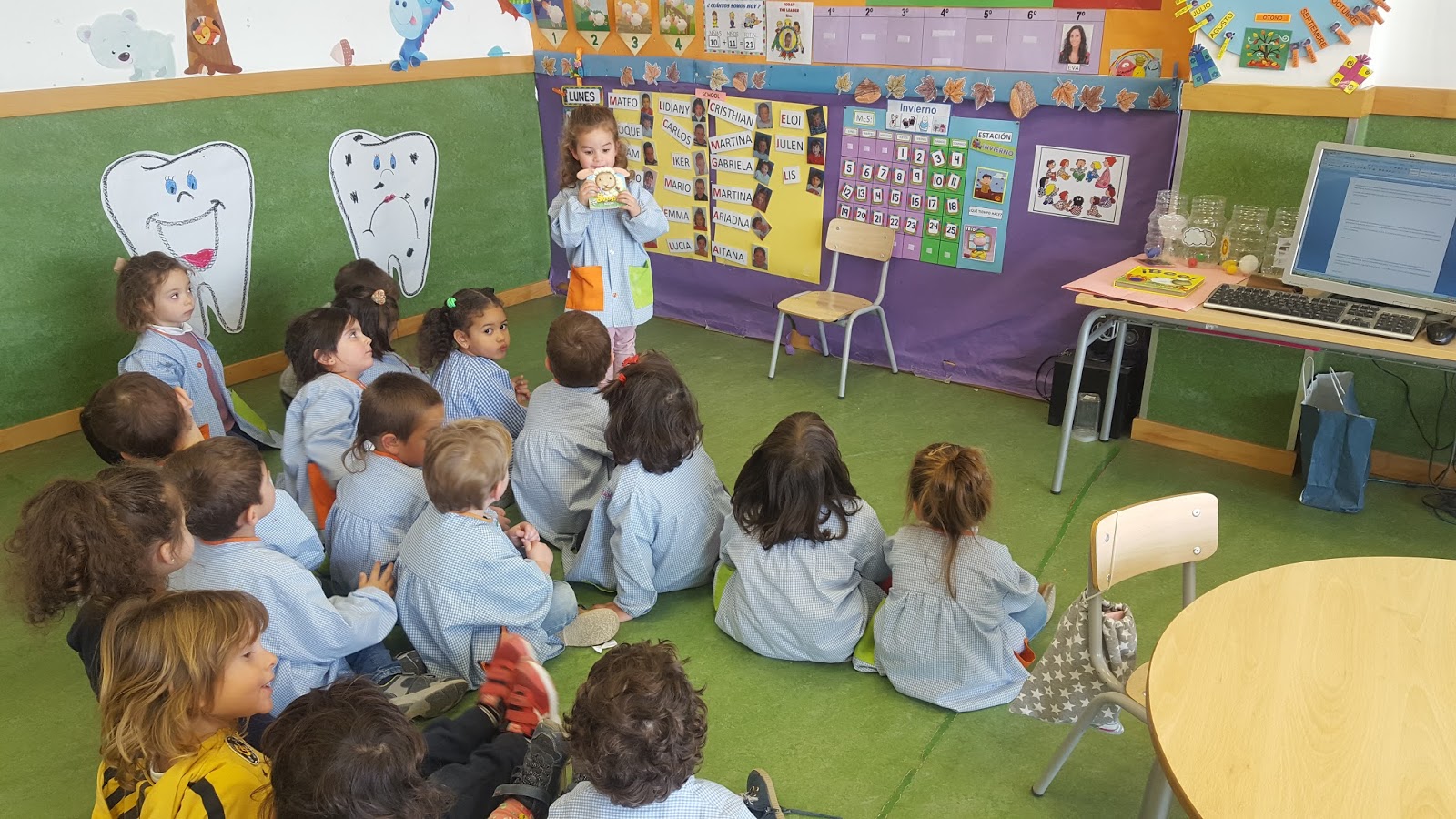 Como ya sabéis, a lo largo de todo el trimestre, todos los papas/familiares estáis invitados a venir a contarnos un cuento, y este lunes hemos tenido una visita muy especial... Nos visitaron los papás de nuestra compañera Valiera con su perrito Ocho.