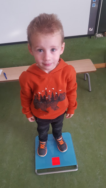 El miércoles nos juntamos todos los niños de 3 años, nos hizo mucha ilusión, estamos acostumbrados ha trabajar juntos y hacer muchas cosas en común...¡¡ Y llevábamos dos semanas sin juntarnos !!. Hablamos sobre que es una báscula, un medidor, cuando nos pesan y nos miden, como hemos crecido y ganado peso en estos 3/4 años...